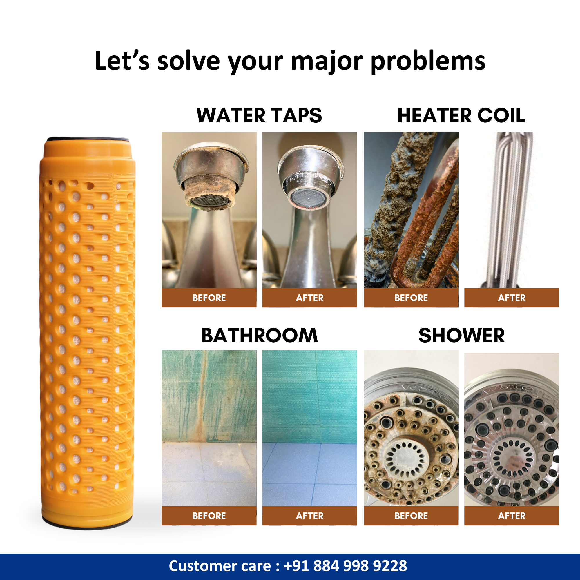 Boil 1 litre of your usual borewell water and 1 litre of D-Scal-treated water for 15 minutes.